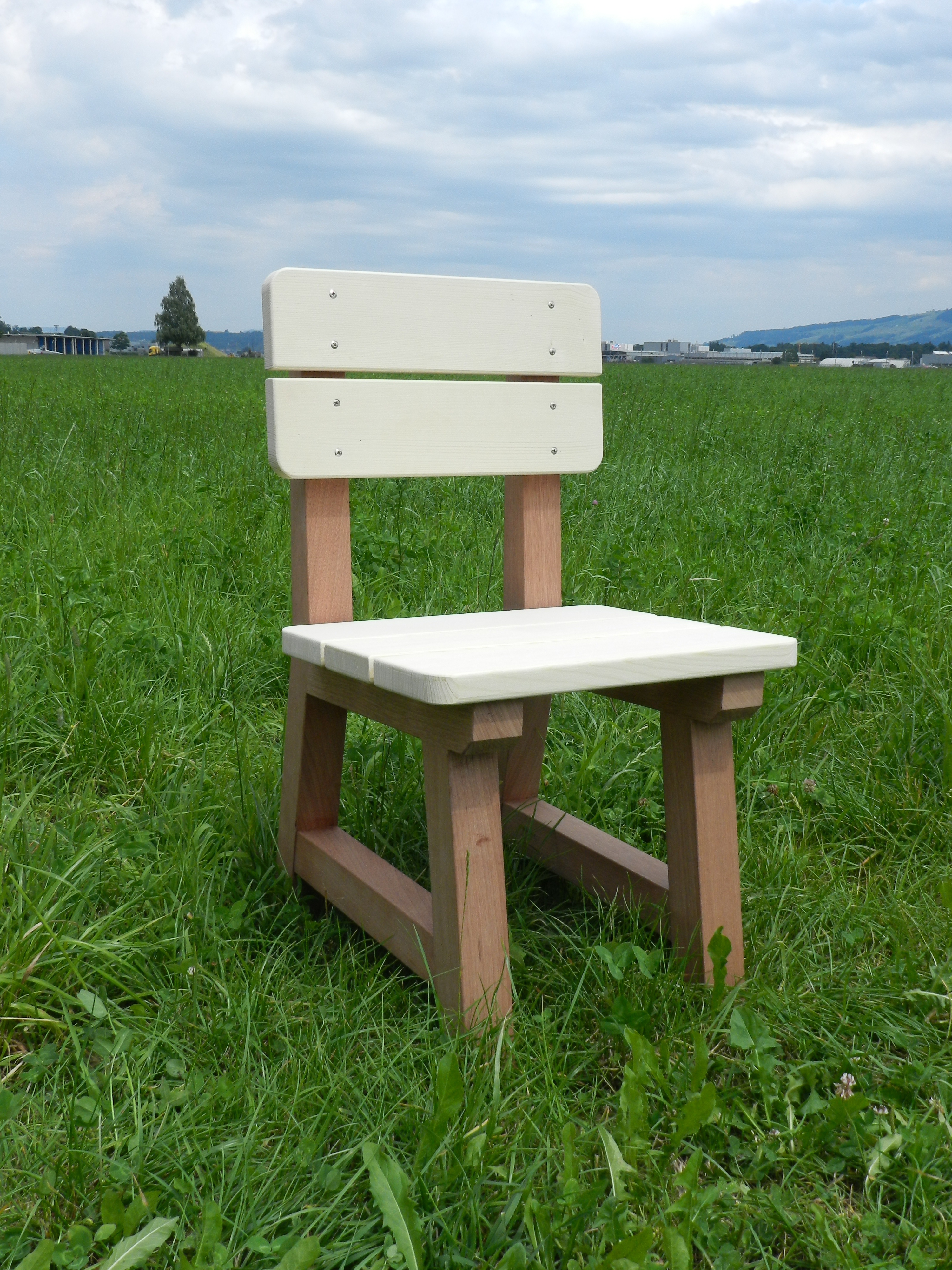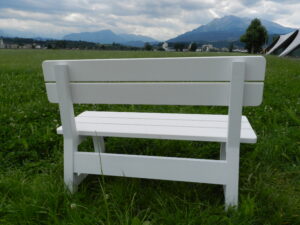 Massive Holzbänke und Holzstühle, in Emmen hergestellt können durch Private, Unternehmen oder Vereine für Fr. 400.- resp. Fr. 250.- erworben werden und lassen sich gegen einen Aufpreis durch Jungwacht oder Blauring gestalten.